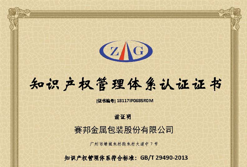 2017年7月17日,賽邦股份正式獲得《知識產權管理體系認證證書》,由此成為率先...